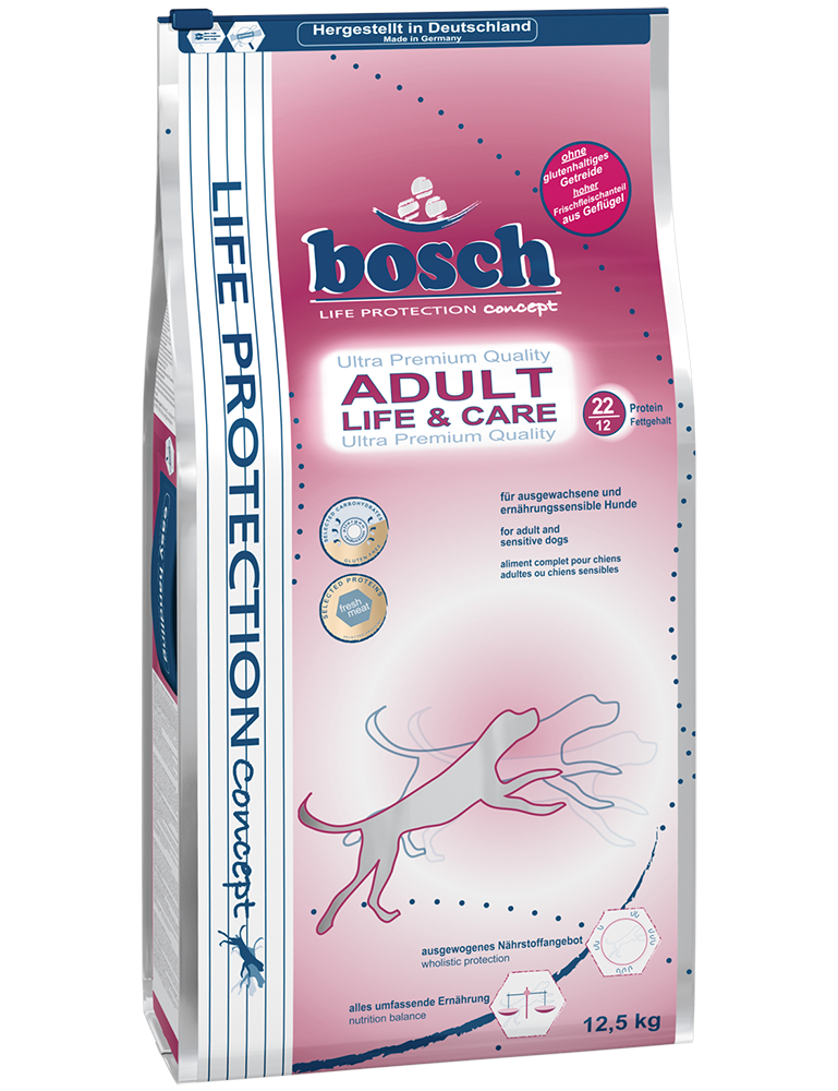 Life & Care eignet sich insbesondere für ausgewachsene ernährungssensible Hunde aller Rassen und stellt somit eine besonders hochwertige Basis für eine umfassende fürsorgliche und vitalisierende Ernährung des Hundes dar.